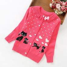 包邮 童装女童针织衫春秋款中大童纯棉线衣开衫儿童猫咪针织外套