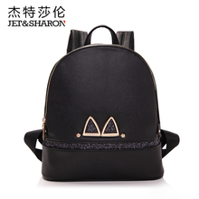 杰特莎伦双肩包2016秋冬新款韩版可爱猫耳朵书包休闲旅行背包大包