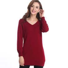 绒喆鄂尔多斯市产女士V领中长款针织衫毛衣女式羊绒衫毛衫KZ2616