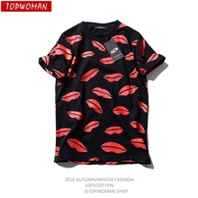 2017欧美情侣纯棉短袖新品夏装潮牌全身红唇印花圆领T恤打底衫