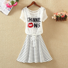2017夏季新款韩版学生罩衫+条纹修身显瘦背心裙子时尚两件套装潮