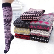 日系过膝袜 女保暖复古麻花显瘦春秋季加厚羊毛长筒袜 长袜高筒袜