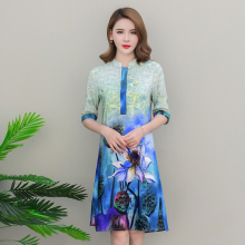 2017夏季新款女装中国风显瘦高档印花连衣裙夏桑蚕丝中长款
