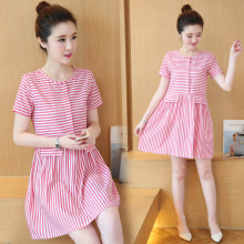 孕妇夏装时尚款上衣孕妇裙韩版宽松中长款潮妈夏季短袖条纹连衣裙