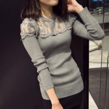 2017韩版春装新款性感蕾丝修身显瘦长袖T恤女潮打底衫