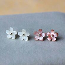 樱花 925纯银耳钉 天然贝壳花耳钉 防过敏银耳饰 简约可爱百搭 女