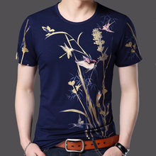 短袖T恤男中青年夏季潮流印花圆领纯棉丅恤修身男士半袖体恤上衣