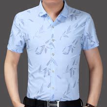 短袖衬衫男士中年夏季薄款免烫丝光棉休闲印花寸衫半袖男装衬衣男
