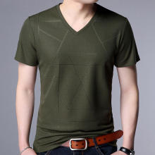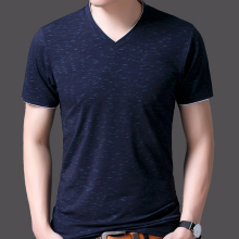 2017夏季中年男士短袖t恤V领丝光棉半袖体恤衫纯色薄款男装上衣服