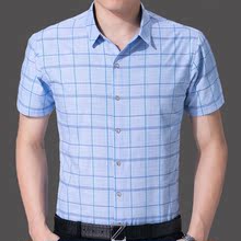 2017夏季中年男士短袖衬衫薄款男装商务休闲寸衫格子丝光棉衬衣男
