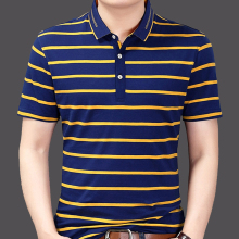 t恤男短袖中年男装翻领大码宽松条纹体恤爸爸装商务休闲上衣丅恤