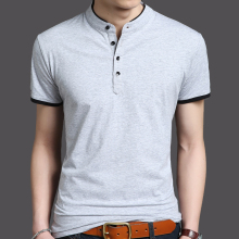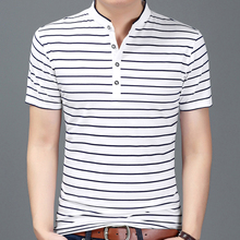 2017夏装男装短袖T恤男士纯棉半袖体恤衫条纹立领短袖丅恤上衣服