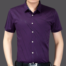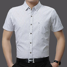 夏季中年男士短袖衬衫丝光棉男装休闲薄款半袖寸衫条纹免烫衬衣男