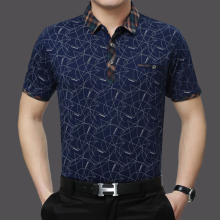 2017夏季t恤男短袖中年男士双丝光棉半袖体恤翻领爸爸装夏天衣服