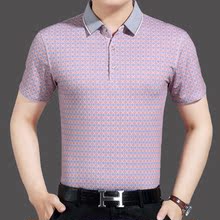 夏季中年男士短袖t恤40-50岁翻领丝光棉大码爸爸装宽松半袖体恤衫