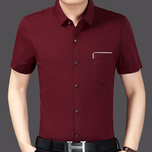 2017夏季新款中年男士短袖衬衫丝光棉免烫衬衣商务休闲半袖寸衫男