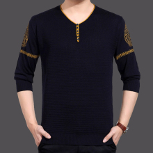 2017春季新款中年男士羊毛衫V领针织打底衫纯色薄款毛衣长袖t恤男
