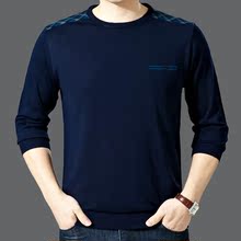 2017春季新款中年男士羊毛衫圆领套头打底衫薄款毛衣长袖t恤男装