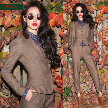 LISAY U春秋原创复古中性毛呢人字纹双排扣修身无袖西裤背心马甲