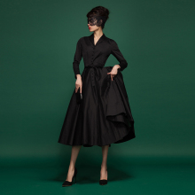 LISA YU新款春秋欧美复古赫本风纯棉七分袖蓬蓬裙文艺女装连衣裙