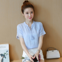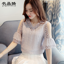 2017夏装新款女士韩版百搭短袖雪纺衫上衣服潮春季时尚蕾丝打底衫