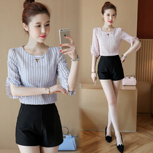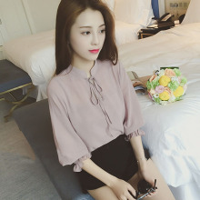 碎花雪纺衬衫短袖女夏装2017新款韩版百搭超仙甜美小清新上衣短款