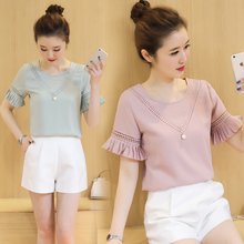 夏装2017新款女装淑女气质超仙雪纺衫短袖荷叶边上衣服女韩版百搭