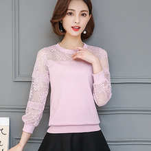 春装2017新款潮韩版时尚百搭蕾丝雪纺衫长袖秋冬女士上衣服打底衫