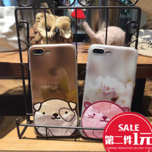 烤瓷亮面苹果6s plus手机壳 创意卡通情侣款iPhone7plus软壳男女