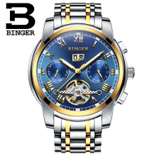BINGER宾格手表男士正品机械表男表防水商务陀飞轮镂空腕表多功能
