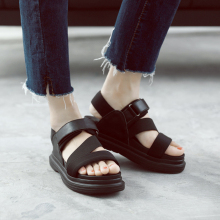 凉鞋女夏2017新款真皮韩版松糕厚底百搭简约学生魔术贴平底女鞋