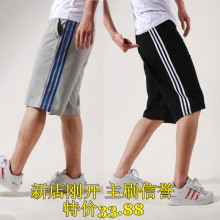 2017夏季休闲男士短裤七分裤男三条杠青少年运动7分裤卫裤中沙滩