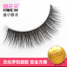 包邮 3D立体假睫毛3-1自然裸妆逼真 短款 交叉稍硬棉线梗送胶