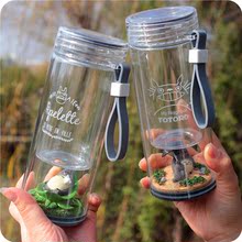 潮牌韩版创意流女卡通可爱玻璃杯清新便携水瓶韩国学生随手水杯子