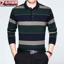 2016秋季新款中年男士长袖翻领T恤宽松条纹体恤衣服中老年爸爸装