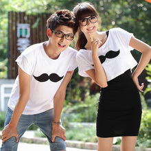 沙滩情侣装夏装2016新款韩版短袖T恤上衣韩范夏季女装大码连衣裙
