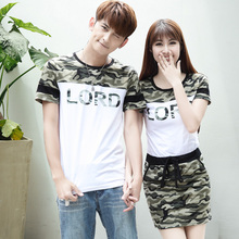 情侣装夏装 2017新款夏季韩版短袖t恤纱网迷彩大码女装上衣连衣裙