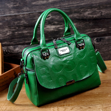 欧洲站2017新款软皮牛皮压纹波士顿女包枕头包手提配真皮包包大包