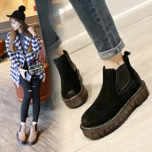 2016秋冬新款中靴弹力绒内增高短靴女靴子高跟平底马丁靴女单靴