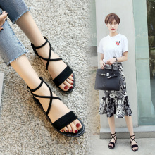 平底凉鞋女夏2017新款学生百搭一字带鞋子女露趾罗马凉鞋女平跟潮