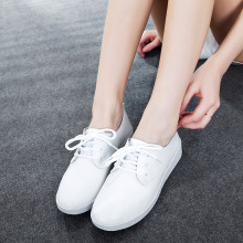 美特妮奥韩版小白鞋真皮平底单鞋春夏休闲女鞋系带小皮鞋护士鞋女