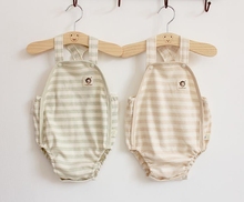 天然彩棉夏季婴儿露背宝宝吊带三角哈衣爬服夏睡衣无荧光K335