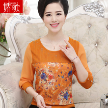 中老年女装春夏装针织衫中年妈妈装妇女打底衫纯色纱袖T恤上衣