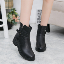 联邦牛仔2015新款防滑短靴英伦时尚潮流真皮裸靴平底拉链中跟女鞋