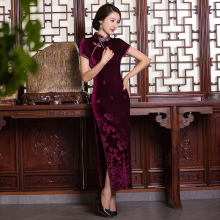 长款旗袍裙2017年高开叉性感修身丝绒旗袍日常改良连衣裙旗袍礼服