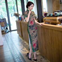 时尚复古旗袍长款修身显瘦优雅夏装2017新款日常旗袍裙连衣裙少女