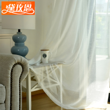 韩式阳台客厅飘窗窗帘公主风简约现代纱帘成品定制白色窗十字麻纱