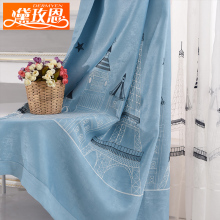 北欧棉麻绣花儿童房卡通遮光窗帘布成品定制卧室飘窗短帘简约加厚