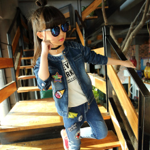 春装女童牛仔套装 儿童两件套春秋款8童装9女孩子12纯棉6-10-14岁