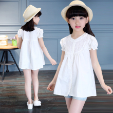 夏装女童衬衫纯色 儿童衬衣5短袖6纯棉7女孩子上衣8中大童10-12岁